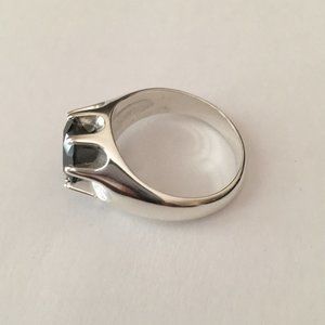 The most beautiful round cut Black Diamond is set as Solitaire on top of the Sterling Silver band. The Black Diamond has 3.32cts, and measures 9.75mm - 9.78mm in diameter. The ring is brand new, it was never used, and fits size 9.5