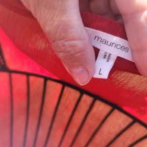 Maurices red top, ornate collar, flounce sleeve, size L. Lightweight material. Beading design, keyhole neck can be worn closed or open.