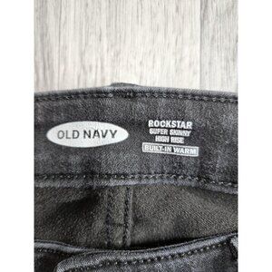 Brand Markings: Old Navy oval logo at waistband; "ROCKSTAR SUPER SKINNY" and "HIGH RISE" plus "BUILT-IN WARM" print; Old Navy-branded front button