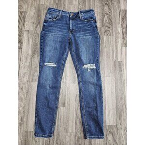 Old Navy Rockstar Jeans Womens 6 Petite Blue Distressed Denim Super Skinny High Rise