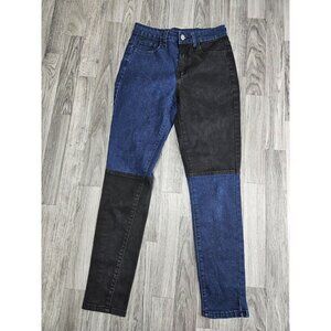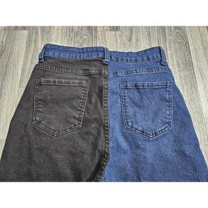 (3/$35) SHEIN Jeans Womens Medium Blue Black Two Tone Colorblock Patchwork Denim