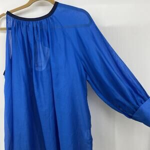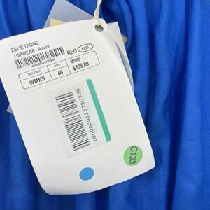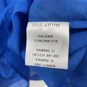 $335 Zeus + Dione 100% Linen Top Size 46 One Shoulder Blouse X-Large Blue Flowy