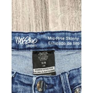 Mossimo Women Size 2 R Mid Rise Skinny Distressed Power Stretch Denim Blue Jeans