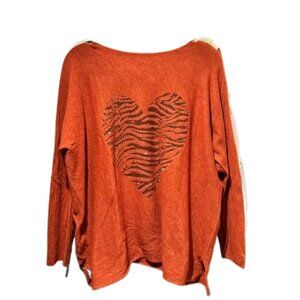 Rhinestone and tiger detailed heart. This shirt does not have a size however it should fit a size medium to large. It’s meant to fit oversized. Measures 25” pit to pit, and 25” in length. Very good condition.