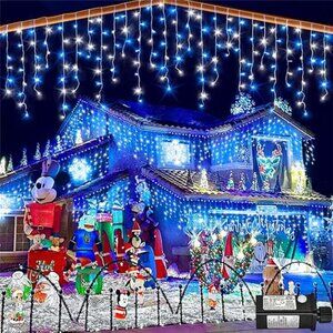 🧿【Easy and Safe to Use】First unfasten the string lights, hold the straight string and let the drops fall naturally, then hanging the curtain string fairy lights anywhere you want to decorate, such as eaves, walls, yards, trees, fences, decks, railings, porches,balcony etc. Children and pets are safe to touch the hanging Christmas lights.And these Christmas icicle lights will not overheat even work for long time.