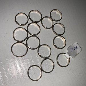 Measures between 13.19mm and 14.12 mm wide. The band is 2mm thick. Some bands may be larger than others but all are under a size 1.
