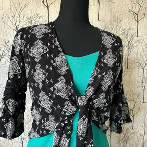 3/4 Bell Sleeves Cropped Shrug Bolero Cardigan Xhilaration Black and White Boho