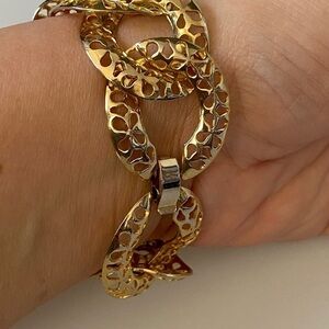 34 Cuff Bangle Bangle Gold Tone Mesh Filigree Design Light Gold Tone 7.25”