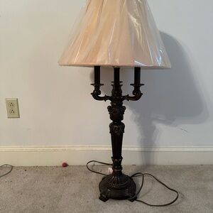 Illuminate your space with this elegant tan table lamp. Its classic design adds a touch of sophistication to any room.