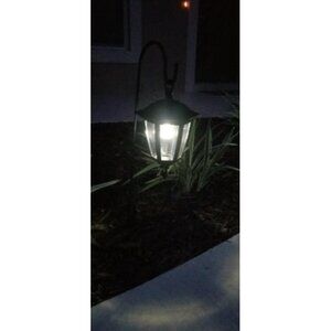 Unique Style Lantern: MAGGIFT 34 inch hanging warm white solar lights with 2 shepherd hooks suitable for outdoor use, add a charming ambience, perfect use on pathway, decorate your garden, porch or yard. These lanterns can also be hung in other places without shepherd hook. Package includes 2 hanging warm white solar lights, 2 shepherd hooks. Lantern Size: 6.3 x 9.5 Inch. Light Color: Warm White. Bigger than other brands.