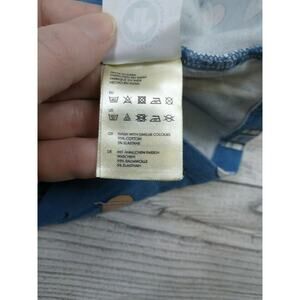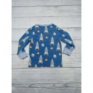 GUC Meyadey long sleeve tee. Blue with light blue collar and cuffs. Space shuttle and planet print. Light wash wear/pilling