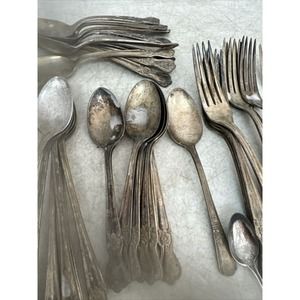 This 34 piece set of Old Company Plate Signature Rose Pattern flatware includes both forks and spoons. The timeless design and composition of silverplate make this set a great addition to any collection. The pieces show some signs of wear due to age, but are still in great condition for use or display. The set is perfect for hosting dinner parties or adding a vintage touch to your dining experience.
