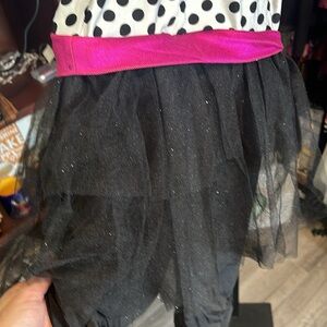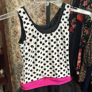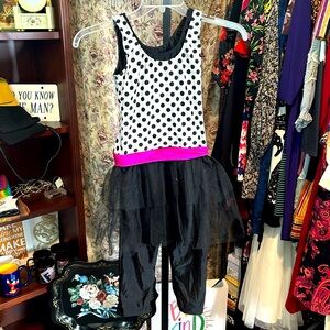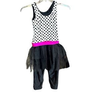 “NWOT” 💖 Cute Black & White Polka Dot Top, Metallic Fuchsia Waistband, Sparkly TuTu, Capri Pants. Use as a Dance Costume, for Dress Up or Halloween.