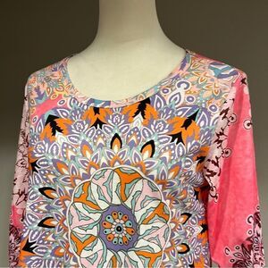 3/4 Sleeve Damask Floral Printed Tunic Dress Bohemian Swing Casual