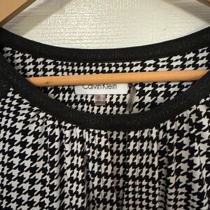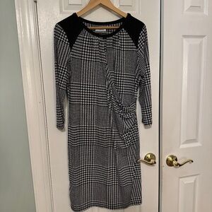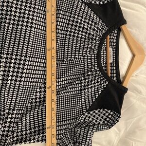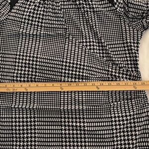 Houndstooth Faux Wrap with keyhole neck and faux leather shoulders.