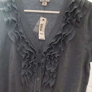 NWT. 3/4 sleeve ruffle blue spring sweater. Brand new with tags. Great for spring! Pair with white jeans or shorts. Soft knit.