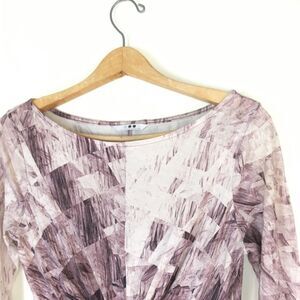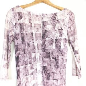- Boatneck - 3/4 length sleeves - Knotted front - Printed - Made in USA