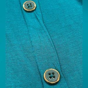 3/4 Sleeve length teal tunic with Gold/teal button detail down back