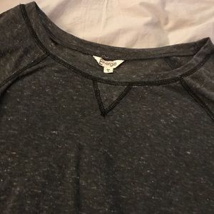 Grey comfy fabric. Says it is a youth large but fits as a women’s small.