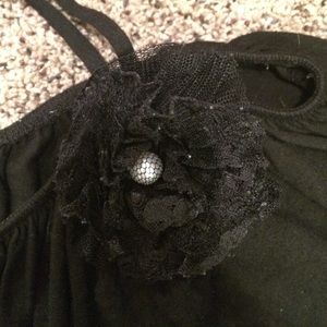 Super nice flowey material, lace flower with a bead by the shoulder.