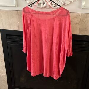 Three-quarter sleeve linen top. Almost like a knit material. Color is pink/coral new without tags oversized. (Pc)