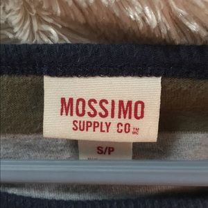 Army green and Gray stripped 3/4 sleeve shirt rounded bottom that gives you a flattering look and rounded top small
