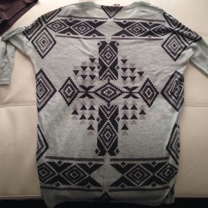 Aztec print. Very pretty turquoise color. Long shirt.