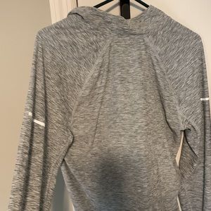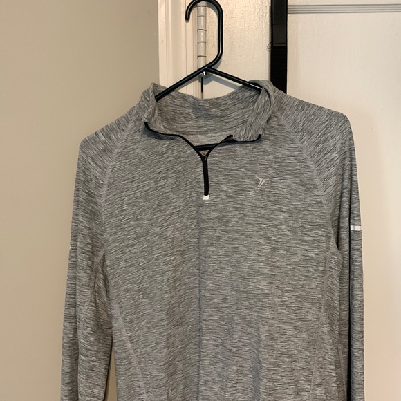 Old Navy Active 3/4 zip pullover. Pullover has raglan sleeves. Worn only a few times, medium too small for me. Clean, smoke free home. Great for running or working out. Reflectors for running at night and thumb holes. Size is medium. Color is a light gray.
