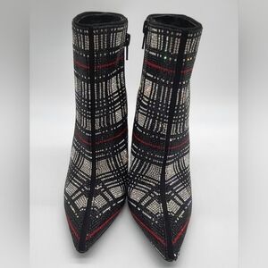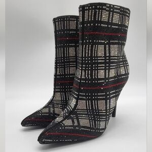 INC ankle boots, sequin boots, plaid boots, pointed toe booties, stiletto boots, women’s fashion boots, holiday style, dress boots, party shoes, glam boots, size 5.5 boots