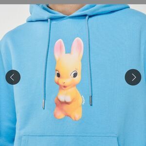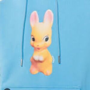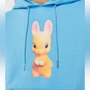 $340 Sandro Rabbit print blue hoodie sweatshirt NWT Small