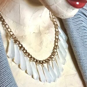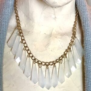 3/$40 VTG Y2K Gold Chain/Faceted Semi-Opaque Milky Acrylic Dangles Necklace