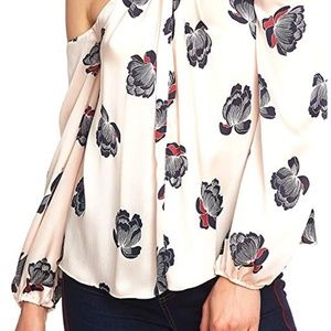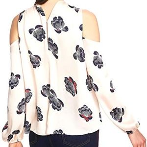 3 for $45 bundle deal, just add to your bundle and I will send offer. 1.State Floating Blossoms Twist Neck Cold Shoulder Blouse Cold-shoulder style gets softened with a striking twist neck and beautiful balloon sleeves in a blossom-laden blouse cut in a crinkle-satin fabric. - 23 1/2" length - Back keyhole button-loop closure - Halter-style twist neck - Long sleeves with elasticized cuffs - 100% polyester - Machine wash, tumble dry SC08,VD04 XS