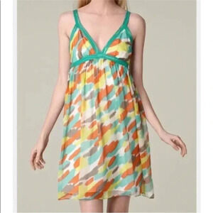 $345 GOSSIP GIRL MILLY GREEN WATERCOLOR SHIMMER SILK DRESS Sz 6