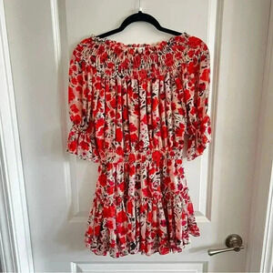 *345 MISA Los Angeles Darla Red and White Off the Shoulder Mini Dress