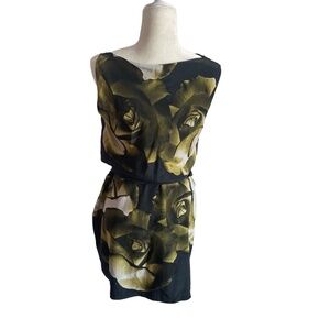 $345 Robert Rodriguez Roses floral Print Silk Dress- Tunic 6 Drape One Shoulder