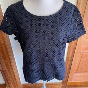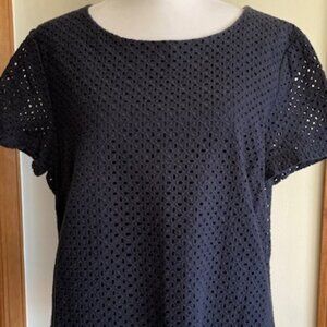 346 BROOKS BROTHERS Navy Eyelet Lined Blouse Keyhole Button Back