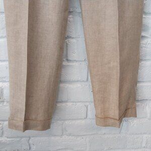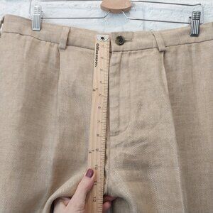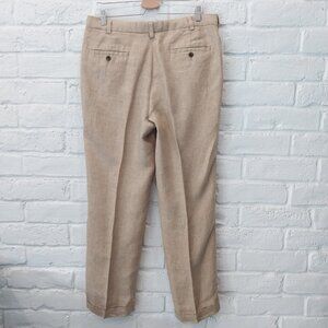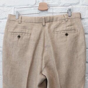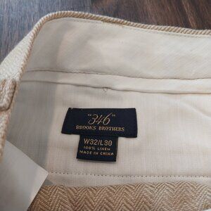 346 Brooks Brothers 100% Linen Pants Men 32x30 Dark Beige Tan Herringbone Cuffed