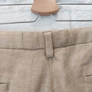 346 Brooks Brothers 100% Linen Pants Men 32x30 Dark Beige Tan Herringbone Cuffed. Tiny dark spot pointed in picture. Great thick linen quality. Please see pictures for item measurements and condition. Buy today will ship next business day.