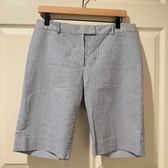 346 Brooks Brothers Seersucker Navy Striped Bermuda Shorts 100% Cotton Size 8