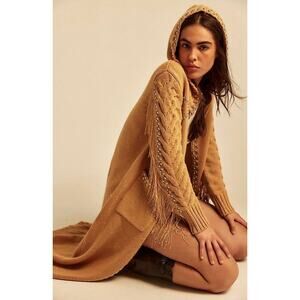 $347! Free People of UNDERSTATED LEATHER Studded Fringe Cardigan Camel S/M NEW