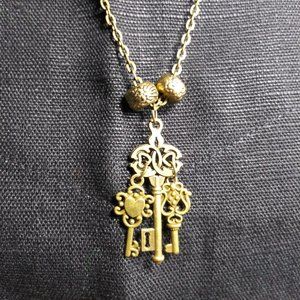347 jeaniemade Antique Brass 3 Keys Necklace