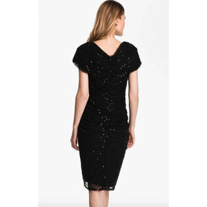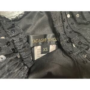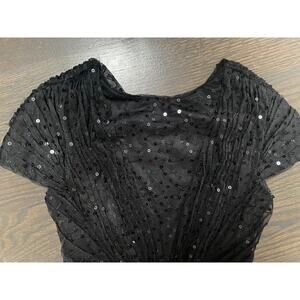$348 Tadashi Shoji Gathered Sequin Mesh Dress in Black ~XS