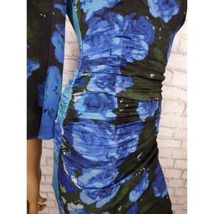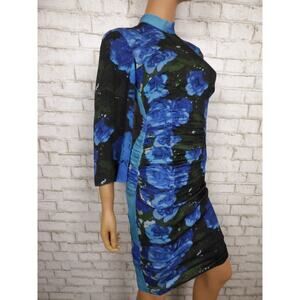 $348 Tracy Reese Blue Foral Cutout Back Flutter Sleeve Ruched Dress 2 NWT