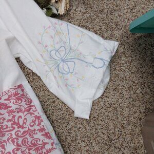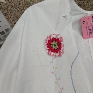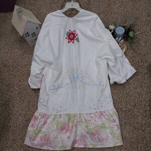 3499 Size XL Long Duster Upcycled from Linen /Cotton Tablecloths, Pit to pit 24" length 41" sleeve from the shoulder 21".