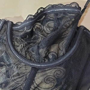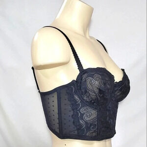 Gilligan O'Malley Semi Sheer Embroidered Lace Underwire Longline Bustier Bra 34B Black