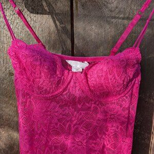34B Victoria Secret 2003 Y2K Pink Lace Feminine Bustier Top Lingerie Slip Dress