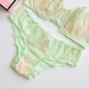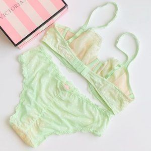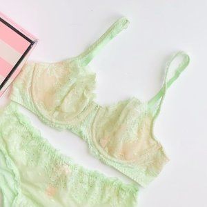 VS Victorias Secret green lingerie set in size: bra: 34C, panties: SMALL