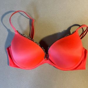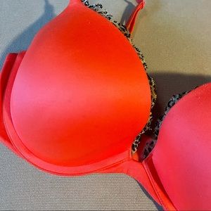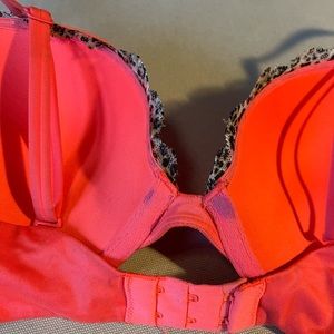 Very sexy push-up in a fun neon orange color with cheetah print lace detail. Some signs of wear.