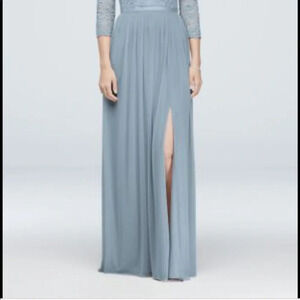 3/4-Sleeve Illusion Lace and Mesh Bridesmaid Dress