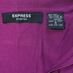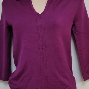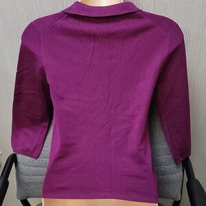 Like New 3/4 Sleeve Express Purple / Burgundy Silk Blend V-Neck Collared Sweater. Has no signs of wear.